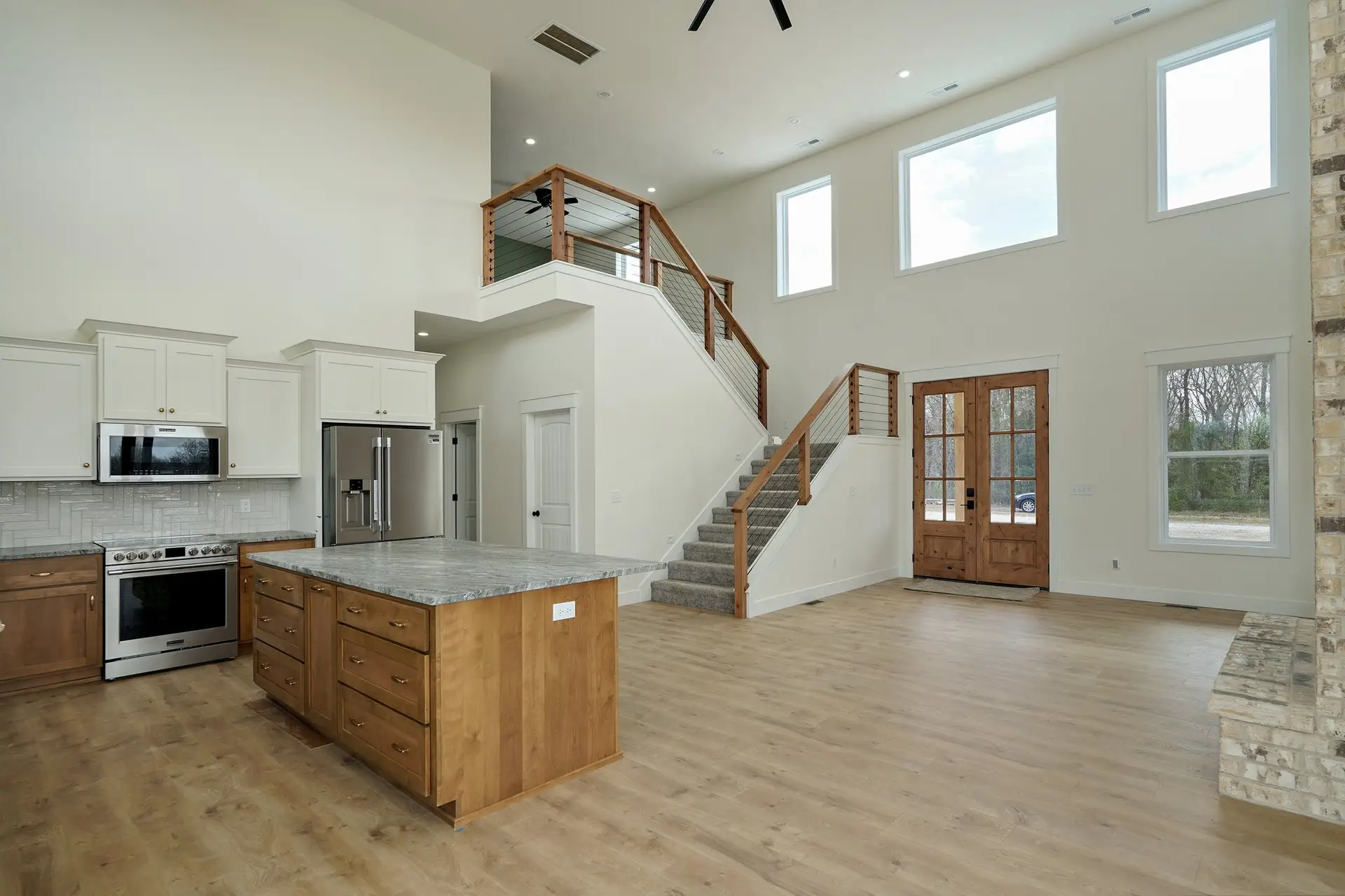 Heartland Barn Estate is a custom-built two-story barndominium located in Fair Grove, Missouri, designed with simplicity, functionality, and family living at the forefront. Spanning 2,895 square feet, the home was thoughtfully planned for a growing family with young children, emphasizing open spaces and durable finishes suited for everyday life.